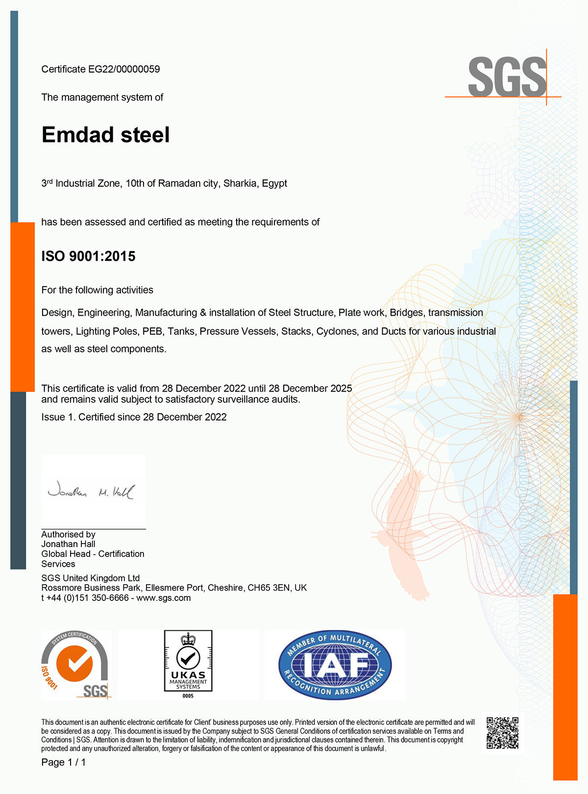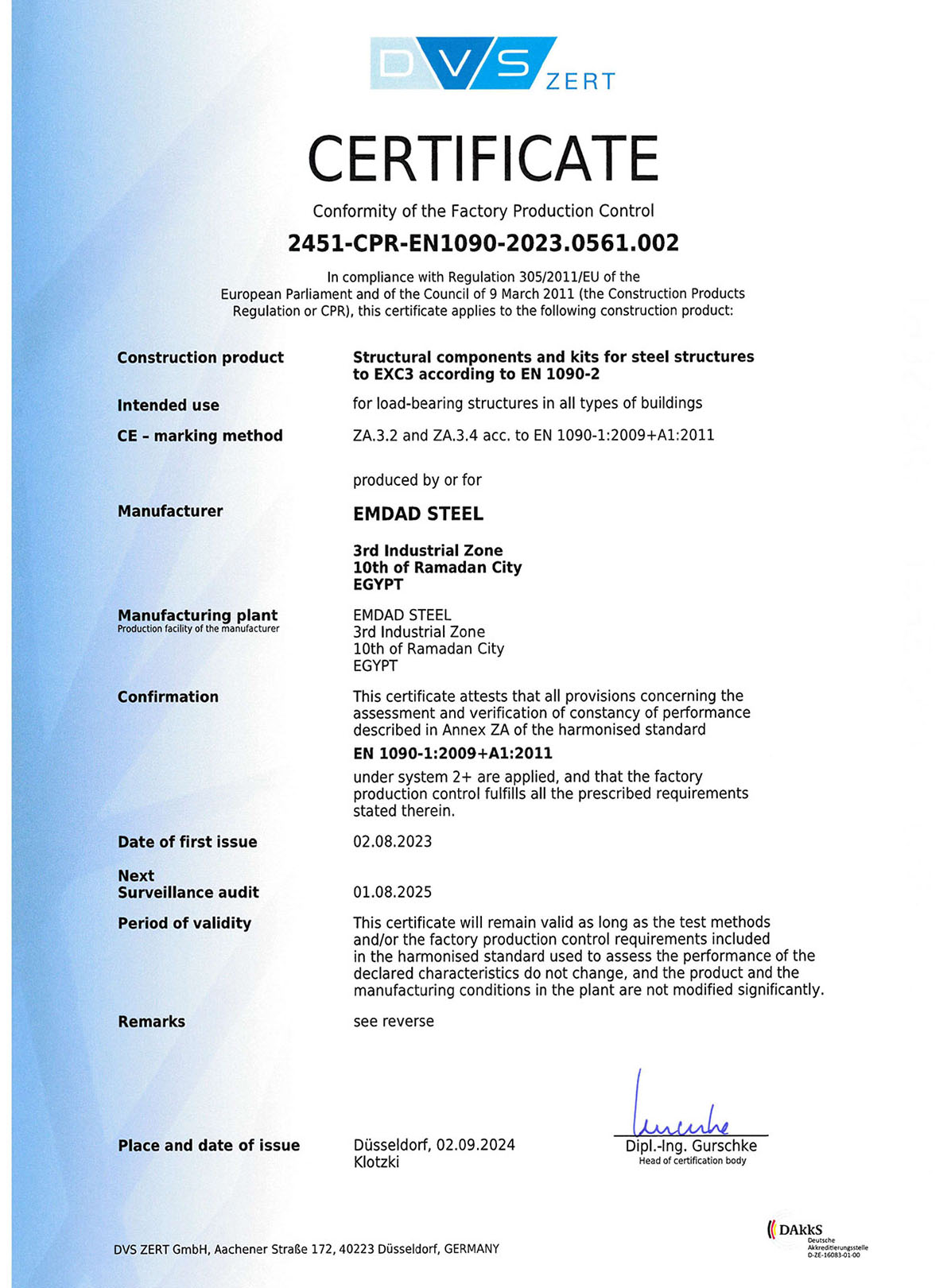 Emdad started the manufacture journey at 2020 by our first factory at 10th of Ramadan with 30,000 SQM and now our working area reached up to 80,000 SQM in addition to our own Galvanization plant.
